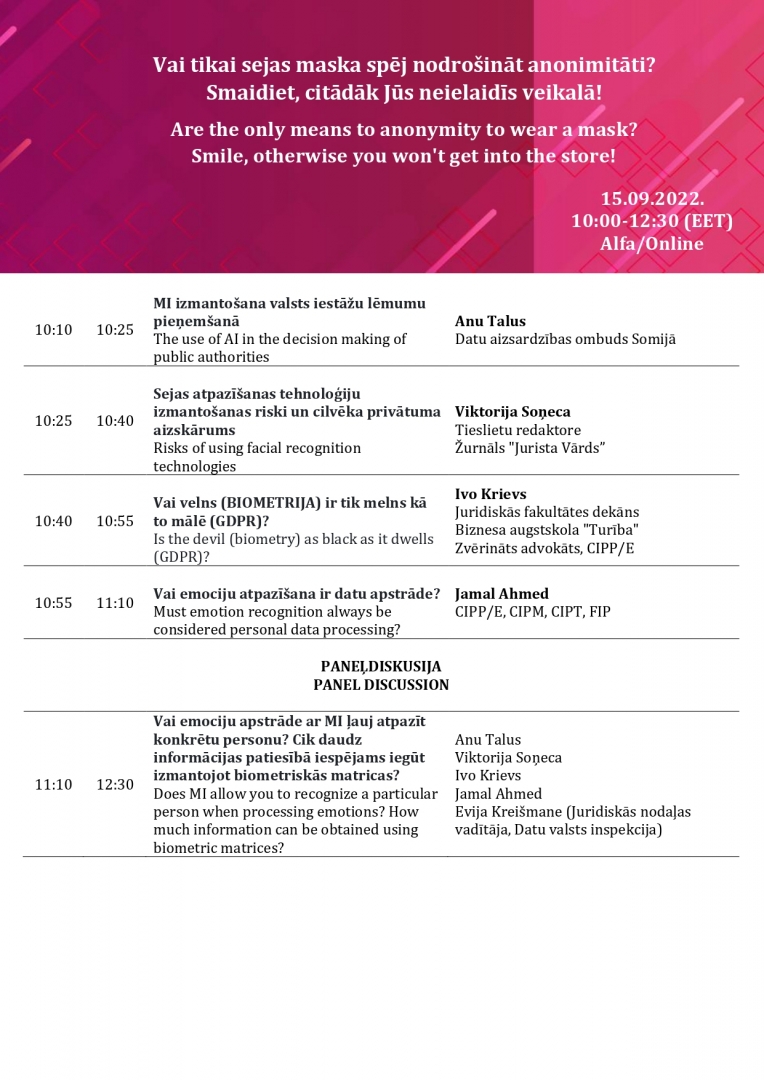 (LV) Sesijas laikā dalībnieki diskutēs par sejas atpazīšanas tehnoloģiju izmantošanu publiskā un privātā sektorā, lai rastu atbildes uz jautājumiem - Kā darbojas sejas atpazīšanas tehnoloģijas? Vai emociju atpazīšana ir datu apstrāde?