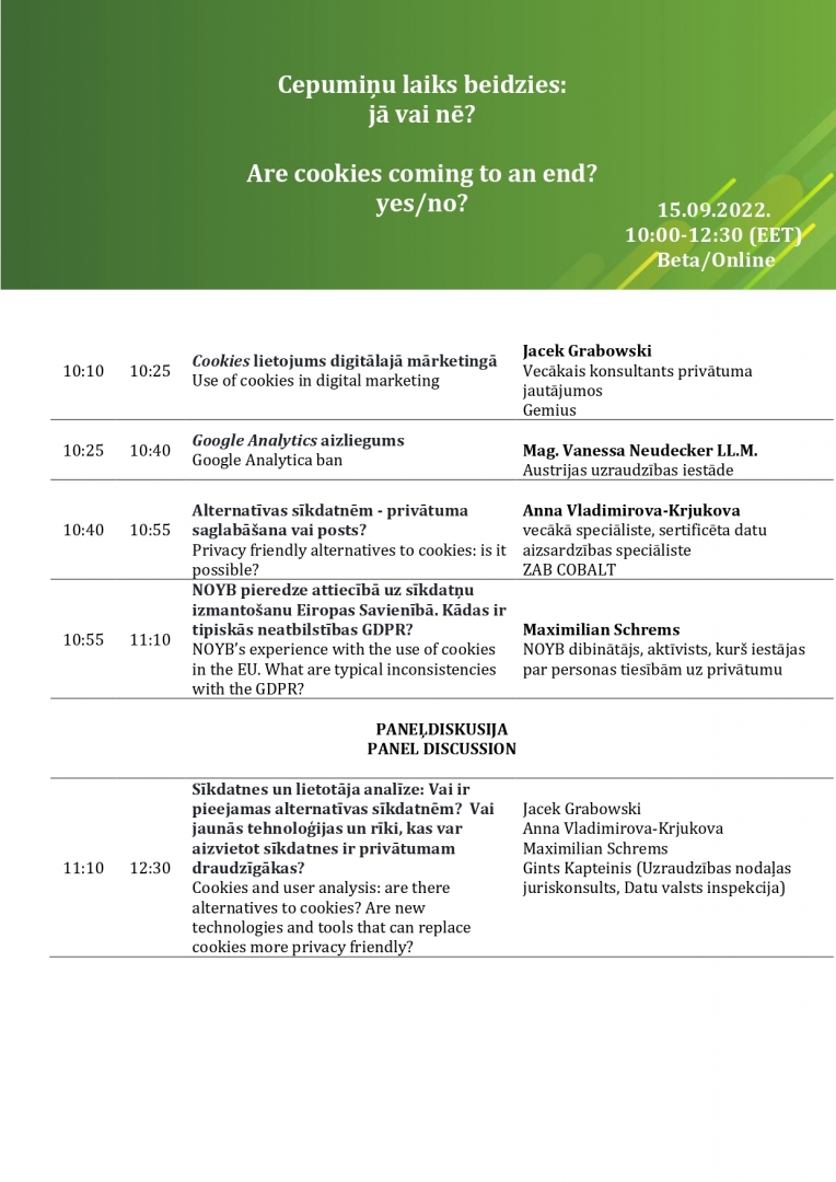 (LV) Sesijas laikā dalībnieki diskutēs par sīkdatnēm un lietotāju analīzi (profilēšana): Vai ir pieejamas alternatīvas sīkdatnēm? Jaunās tehnoloģijas un rīki, kas var aizvietot sīkdatnes.