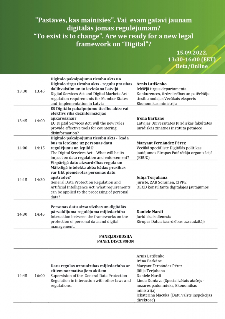(LV) Sesijas laikā dalībnieki diskutēs par Datu regulas uzraudzības mijiedarbību ar citiem normatīvajiem aktiem un gaidāmajām izmaiņām, kas saistīts ar jauno digitālo tiesību aktu pakotni.